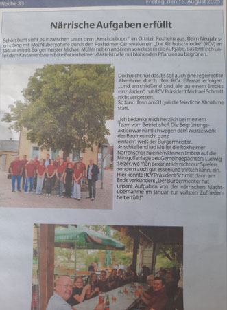 Kurz vor Ende der 5.Jahreszeit veranstaltet der RCV wieder die Schnookewoog in der Chorvereinigung Bobenheim-Roxheim. Die Veranstaltung beginnt um 11:11Uhr. Der gesammelte Erlös der Woog wird wie immer für einen gemeinnützigen Zweck gespendet. Für das leibliche Wohl ist natürlich gesorgt.
