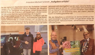 In ihrer Ausgabe vom 18.02.2019 berichtete die RHEINPFAZ Frankenthaler Zeitung über die Prunksitzung der "Altrhoischnooke" vom 16.02.2019: